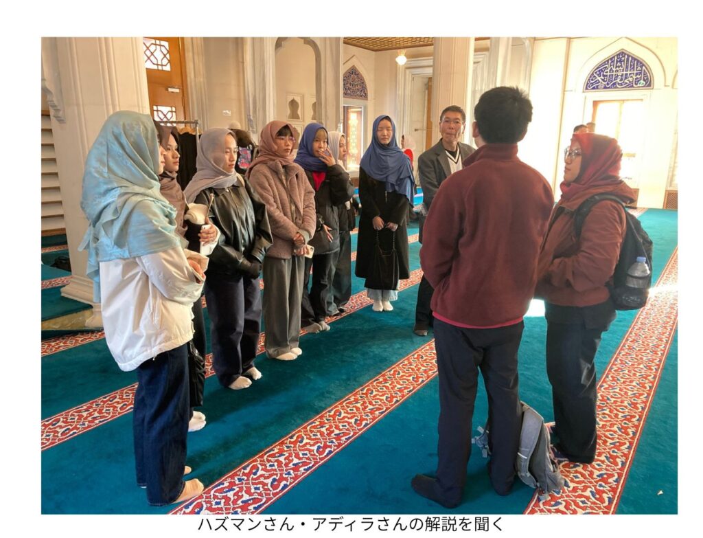 礼拝堂内では、ハズマンさん、アディラさんが、モスクや礼拝のことについて丁寧に教えてくれます。ハズマンさんが実際に礼拝されるところも見せていただきました。