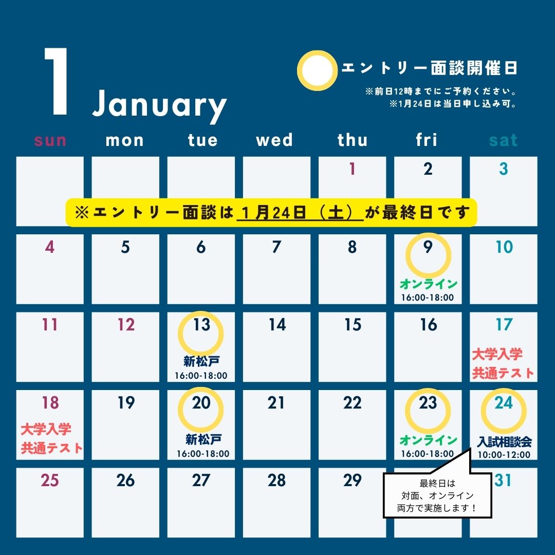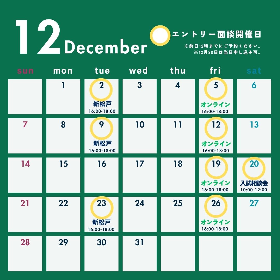 12月、1月のエントリー面談は下記日程で開催を予定しています。
