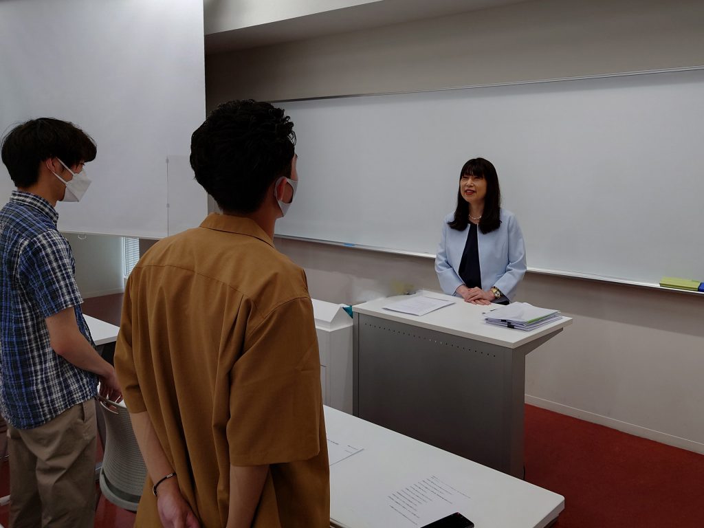 左から社会学部社会学科3年水野 未来翔(ミズノ ミクト)さん、佐藤 純子教授、同学科3年清松 孝志(キヨマツ コウシ)さん