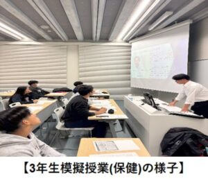 ◎3年生の模擬授業は準備を怠らず熱心にやろうとしている気持ちが伝わります。 そこで4年生は3年生のアイディアに気づきや発見があるなど私たちが経験してきた教育実習を通して3年生に伝えられることが多くあります。双方が成長できる場で非常に良い雰囲気で授業を行えています。私はこの授業を通して、伝え方を学べていると考えます。自分の考えを押し付けるのではなく、その3年生の良さを出し、どう伝えた方が生徒に伝わるのかをアドバイスするようにしています。4年生もこの授業で多くの学びが得られていると実感しています。