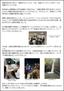 本年度も山梨県富士川町をフィールドに活動を行いました。9月に行ったゼミ合宿についてゼミ生がまとめてくれましたので、ご報告させていただきます。