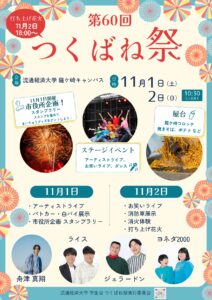 2025年11月1日(土)、2日(日)に龍ケ崎キャンパスにて、「第60回つくばね祭~紡~」を開催いたします。