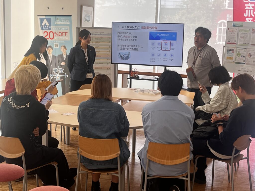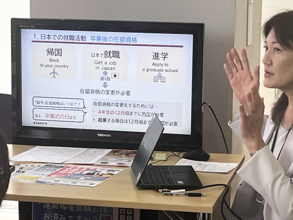 また、留学生には特別バージョンを用意し、日本語能力の向上や日本の就職活動の慣習、情報収集の方法などについて、分かりやすく解説しました。