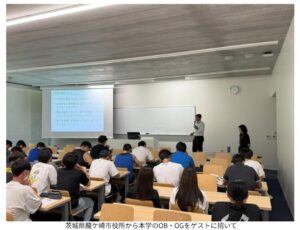 唐﨑:授業では、ゲストから現在のお仕事の内容や魅力、ご自身のこれまでのキャリア、また子育てを経験されている方には、お仕事との両立(ワークライフバランス)についてお話しいただくこともあります。公務員の方々には、職員の採用試験やその対策についてもお話を聞いたりしています。なかには、仕事をしていくなかでの挫折や、それをどう乗り越えていったか、その人の生きざまを感じられるようなお話をお聞かせいただくこともあります。学生は単にお話を聞くだけでなく、積極的に質問をしてもらっています。