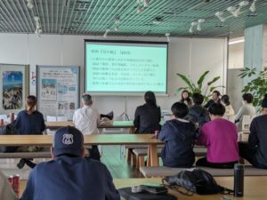 新松戸キャンパスでは、共創社会学部の須川まり先生・西田善行先生をお招きし、震災をテーマとした映像のご紹介をいただきました。