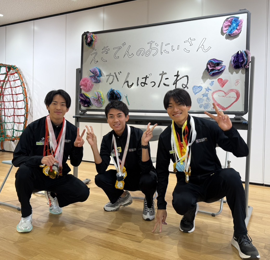 予選会後、駅伝部のメンバーは報告とお礼のため、応援いただいた地域の施設を訪問しました。
