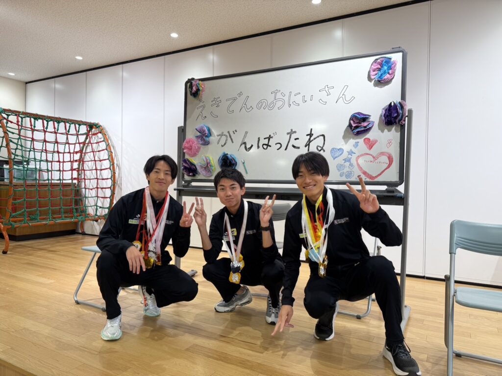 ◇新松戸幼稚園では、園児たちから歌やメンバー全員へ手作りの“メダル”がプレゼントされました。
