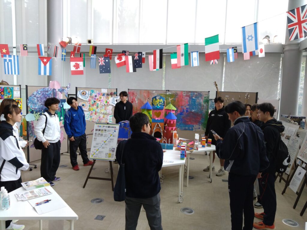 <スポーツ健康科学部・千田元康ゼミは授業で来場。一人一人が気に入った作品を発表>