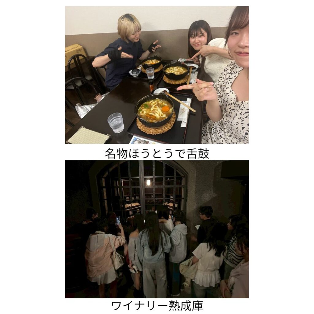 企画から当日の幹事まで、大変なことも多く、何度も挫けそうになりましたが、ツアーの最後にみんなの笑顔と拍手に包まれた瞬間、これまでにない達成感を味わいました。この貴重な経験を通して、仲間と支え合いながら一つのものを創り上げる楽しさと喜びを学ぶことができました。このような学びの機会を与えてくださった山崎先生をはじめ、共に楽しんでくれた学生の皆さんに心から感謝しています。多くの学びと感動が詰まった忘れられないツアーとなりました。