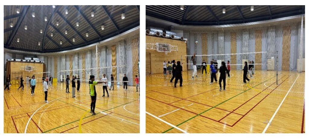 1年生椎名ゼミ・小林ゼミ・松田ゼミ合同ゼミでバレーボール交流会