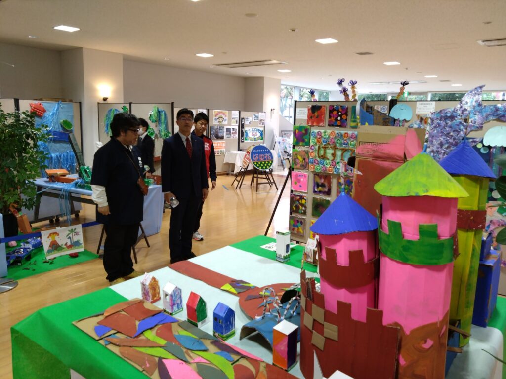 また、新松戸キャンパス近隣にある新松戸幼稚園や旭町小学校をはじめとした教育施設の子どもたちや、流通経済大学付属柏中学・高等学校の生徒たちが出がけた絵画や工芸品も並べられています。