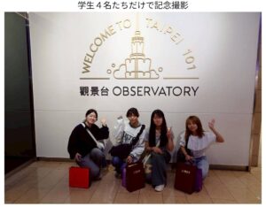 国際文化ツーリズム学科の澤海です。本学科では今年度4つの海外研修が行われ,本記事は第二弾の台湾研修を紹介します。(第一弾はこちら)台湾は日本と地理的にも文化的にも近く,海外旅行先としても常に上位に位置します。本研修では,ベジタリアンビュッフェやLGBT+のプライドパレードを肌で感じ,DEI(多様性のダイバーシティ,公平性のエクイティ,包摂性(受け入れること)のインクルージョン)を学習してくることを目的としました。出発までに様々な変更があり,研修参加者は4名の女子学生となりましたが,4日間の研修はあっという間に過ぎ,全員無事に帰国できました。4名のうち2名は海外へ行くのが初めてということもあり,海外渡航の基本的事項(パスポート取得方法や空港でやるべきことなど),そして台湾渡航での重要事項(地下鉄では飲食禁止,悠遊カードについて,入国前にオンライン入国手続きを完了する必要性など)を事前学習しました。