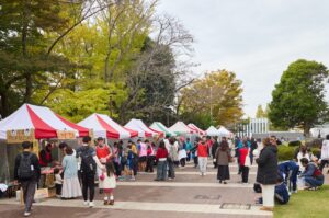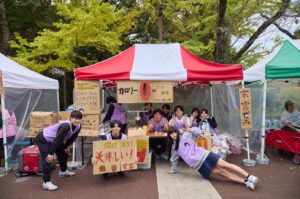 学生たちによる飲食の模擬店は、焼きそば、焼き鳥、焼き芋、ポップコーンにタコス、そして、ベトナム料理、フランクフルト、カレーにクロッフルなど食欲をそそるバラエティ豊かな店がずらりと並び、来場者の皆さんの胃袋を掴んでいました。