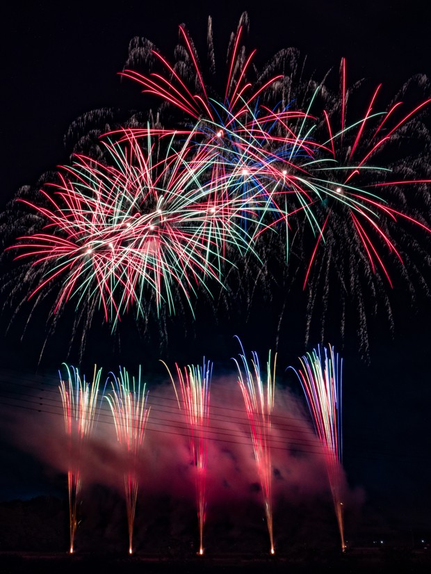 数々の花火大会で優勝している茨城県の㈱山﨑煙火製造所の花火約1000発が龍ケ崎市の夜空を鮮やかに彩りました。