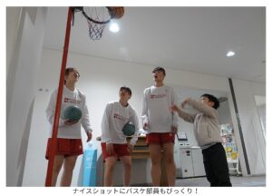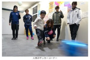 一方龍崎ゼミは3つに分かれて運営を担いました。2年生女子はワンちゃんの記念写真コーナーをサポート、事前に取材に行って、紹介動画も制作しました。また男子はスポーツ広場で「ストラックアウト」を開催、隣の女子サッカー部、同バスケ部の女子とともに、3種目が並ぶ子供たちに人気の本格コーナーに。さらに3年生はステージでの司会や音響を担当しました。今年の「であう広場」の進化は、参加者の紹介コーナーを設けたことです。司会のゼミ生は事前に、参加者の間を回って、インタビュー取材を実施。その成果をもとに紹介のためのセリフを考案し、イベントの成功を裏から支えました。