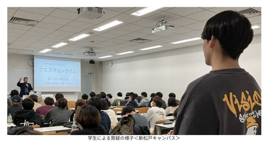 学生からの質問にも丁寧にご回答いただきました。岩﨑課長によると、大変な時とは「大」きく「変」わるときであること、また他部署との連携が必要な場面では「自分の側が相手よりもほんの少し多く汗をかくこと」を心掛けているというお話があり、参加した学生は大きなヒントを得たようでした。