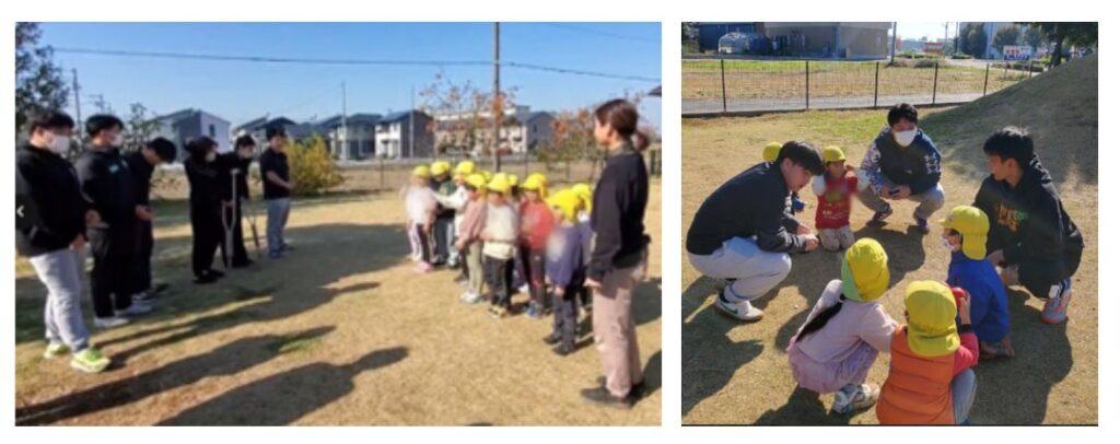 【学園の森どろんこ保育園とスポコミ小林ゼミ(1・2・4年)のスポーツ交流企画】