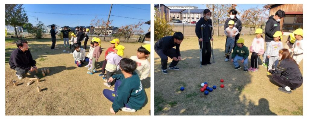 11月17日(月)、スポーツコミュニケーション学科の小林ゼミが、つくば市の学園の森どろんこ保育園様とボッチャ&モルックによるスポーツ交流を実施いたしました!(@学園の森どろんこ保育園)