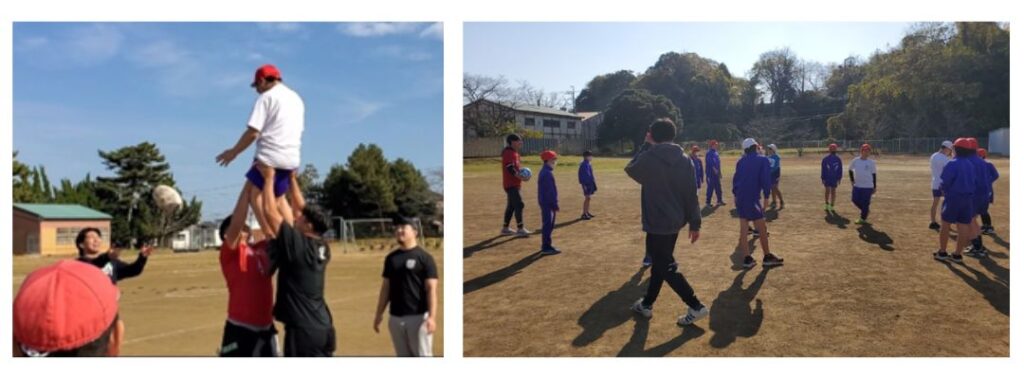 1月27日(木)に、小林ゼミ3年生とスポーツ健康科学科の学生たちが、龍ケ崎市の龍ケ崎小学校6年生約60名と、ラグビー&サッカーによるスポーツ交流(@龍ケ崎小グラウンド)を実施いたしました。