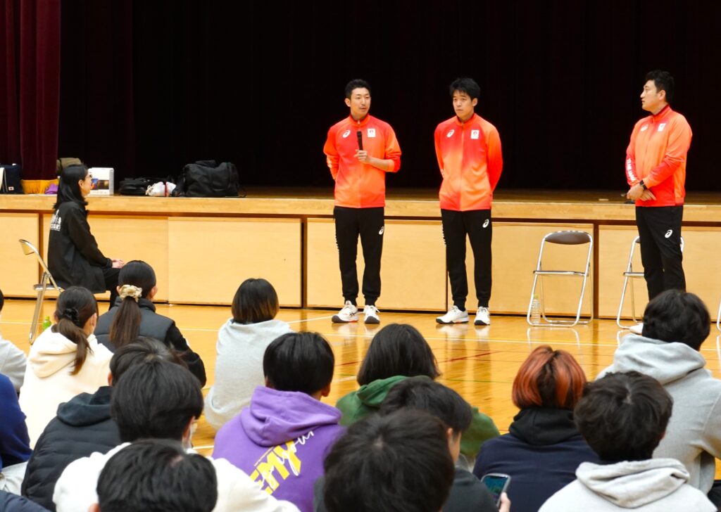 当日は、東京2025デフリンピックバレーボール男子日本代表の村井 貴行監督、キャプテンの高橋 竜一選手、大坪 周平選手の3名を講師として招き、龍ケ崎市役所 障がい福祉課の手話通訳士・佐藤氏にも協力いただきました。