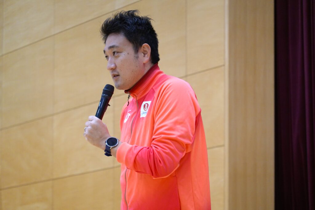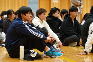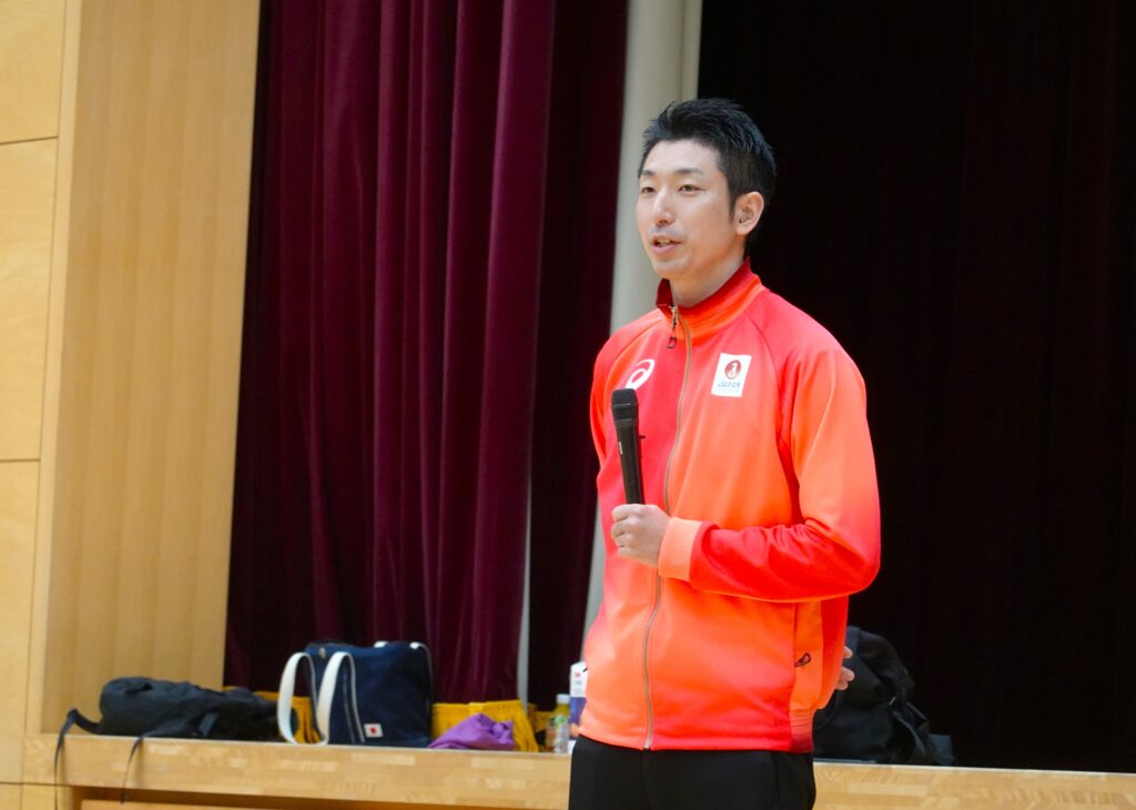 はじめに行われた講話では、「オリンピック」と「デフリンピック」の違いや、「デフバレーボール」の認知度向上に向けた課題について話があり、村井監督は「本人もその家族も、誰もが自信をもってデフリンピックの選手を目指せる社会にしていきたい。」と想いを語りました。