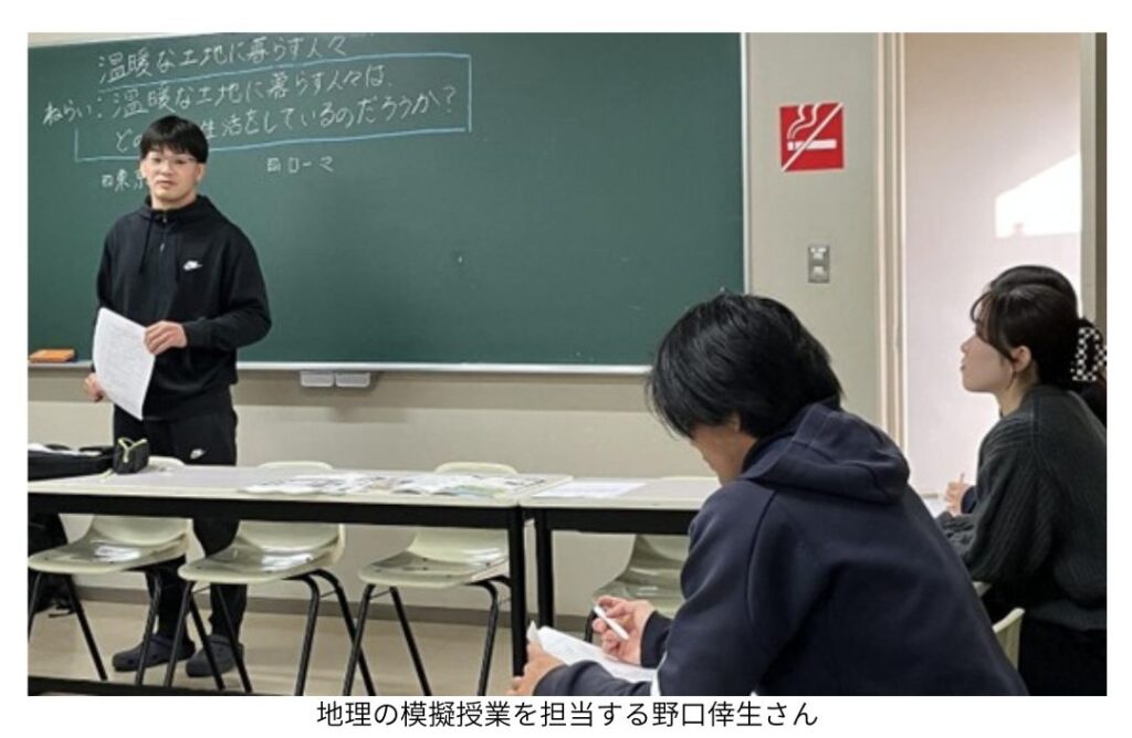 野口:私は高校時代にお世話になった社会の先生の影響で、社会科の教員に憧れをもったことがきっかけで教員免許の取得を目指しています。