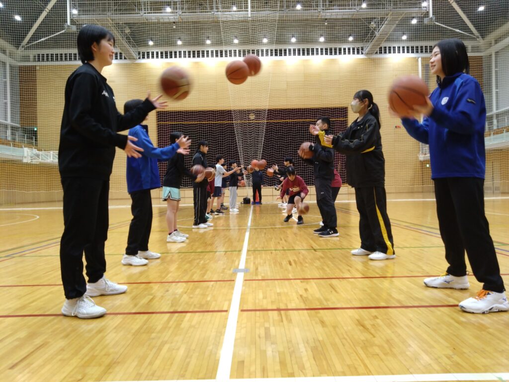 流通経済大学のバスケットボール部が、活動拠点である龍ケ崎キャンパス近隣の中学生を指導する練習会を開きました。