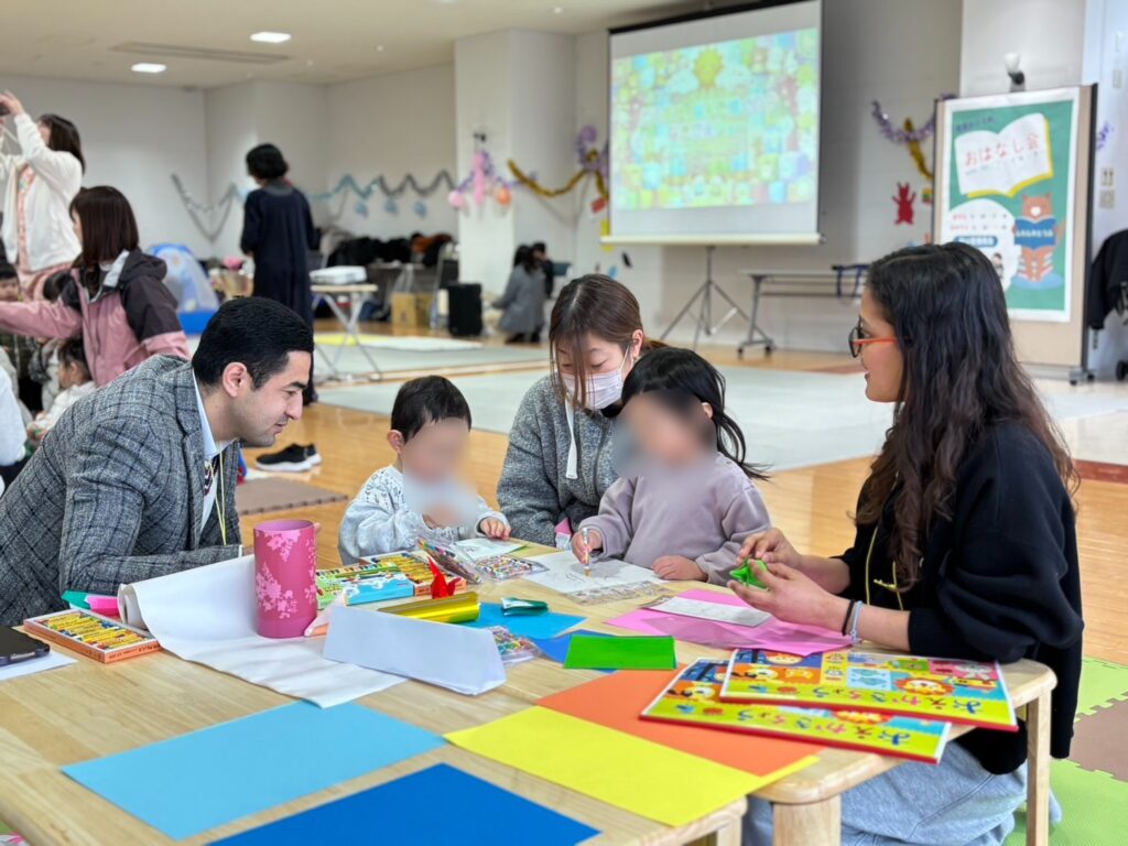 会場では、絵本・手作り紙芝居の読み聞かせや世界の言葉を使ったクイズが行われました。